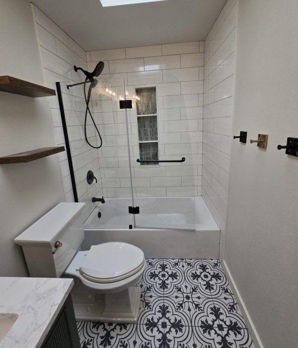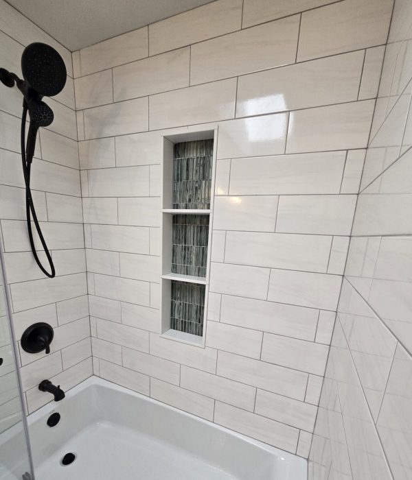 This hallway bathroom remodel features a tiled shower, updated flooring, and a sleek vanity. The result is a clean, modern space designed to improve comfort and everyday functionality.